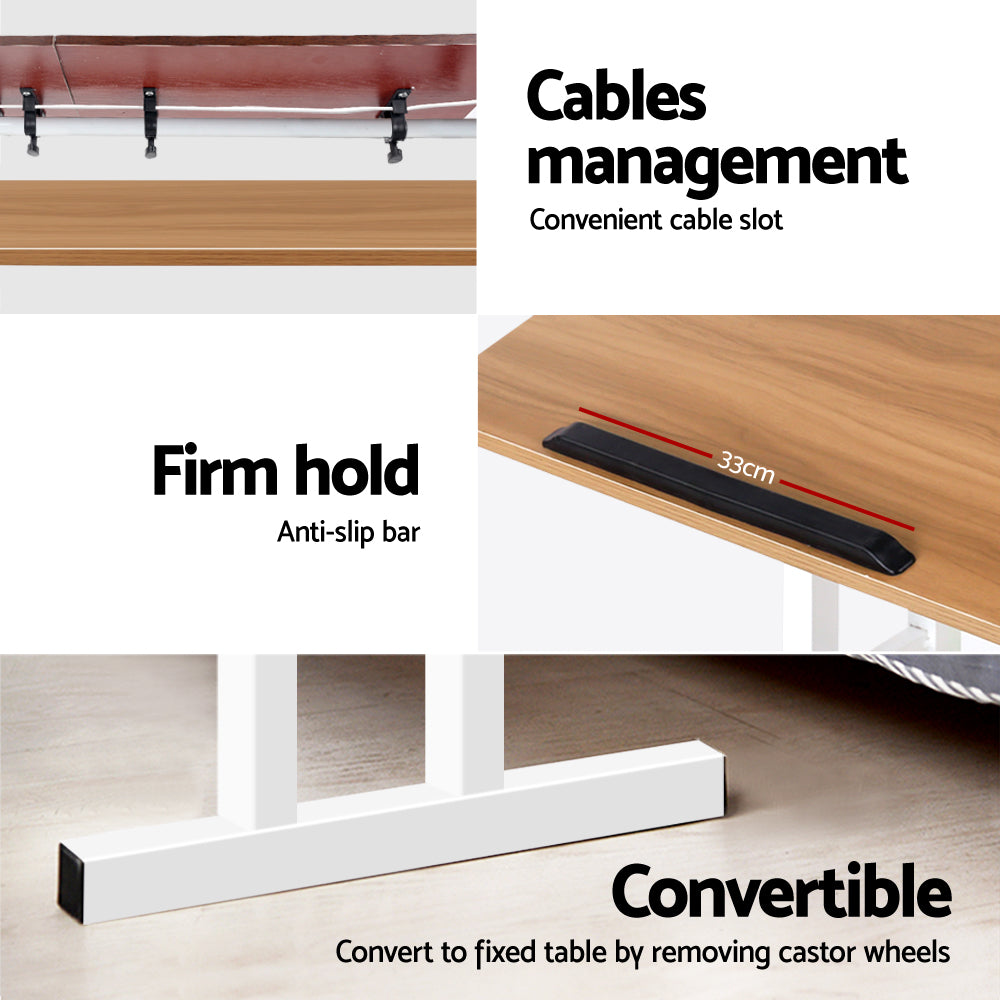 The castor wheels rotate 360°and can be readily locked down. Or remove the detachable wheels for a more permanent fixture. And if needed, the CPU sideboard can also be detached to fit in with your space configuration. Not least, with its thick 17mm MDF board desk tops and sturdy powder-coated H-shape steel frame, our Mobile Twin Laptop Desk is absolutely versatile to function as any type of work top, sitting down or standing up.